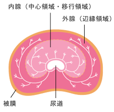 前立腺は大きく分けると尿道の周りの移行領域という部分と周囲の辺縁領域という部分に分けられます。