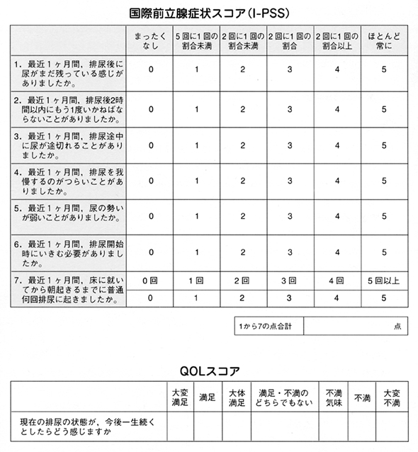 これらの症状をスコア化したものが、国際前立腺症状スコアです。