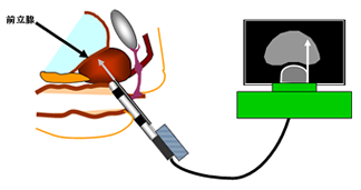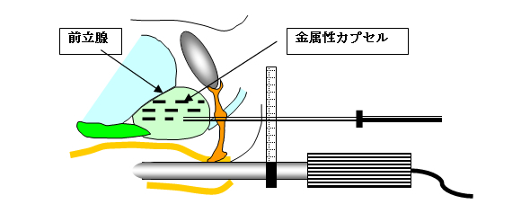 麻酔下に直腸内に入れた超音波で、前立腺を観察しながら、肛門と陰嚢の間の皮膚から針を刺します。針の中から放射性物質を密封した金属製の小さなカプセルを前立腺全体にくまなく挿入します。施設によっても異なりますが、4~5日の入院です。<良い点>