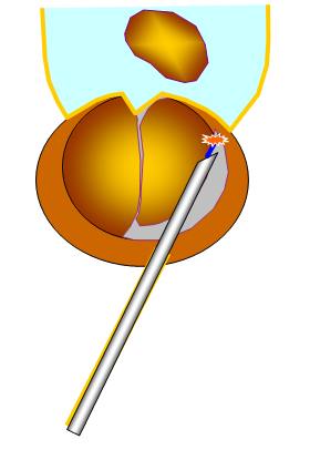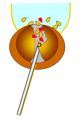 - 尿道から専用の内視鏡を入れ、肥大している前立腺組織を一塊にして、レーザーを用いて周囲の組織より剥離する。その際出血する血管はレーザーで止血する。