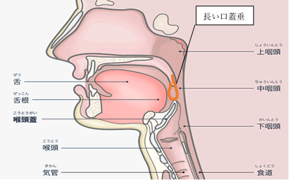 口蓋垂(のどちんこ)が通常より長かったり太かったりすると、喉が狭くなったり、振動する粘膜が大きくなったりするため、いびきの音が大きくなる場合があります。