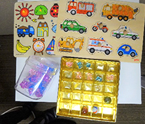 音が聞こえたらビー玉を入れる、手を挙げるといった反応をしてもらい、検査を行います。
