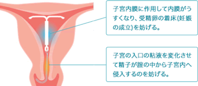 避妊を目的として黄体ホルモンを持続的に放出するリングを使用することが可能です。子宮内膜が薄くなることや子宮頸管の粘液が変化することで避妊効果を発揮します。最長で5年間装着することが可能ですが、副作用への注意や定期検診が必要になりますので、使用に際しましては担当医にご相談ください。