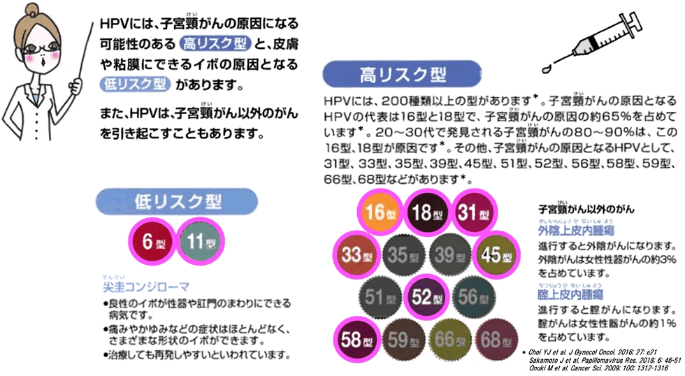 当センターでは子宮頸がん予防の9価のヒトパピローマウイルスワクチン(HPV6/11/16/18/31/33/45/52/58型)が接種可能です。ご希望の患者様は担当医までご相談ください。