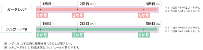 HPVワクチン(ガーダシル®およびシルガード9®)の一般的な接種スケジュール