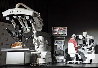 ロボット支援手術は、基本的には従来の腹腔鏡手術と同じ手術手技ですが、ロボット機器のサポートにより、より安全かつ正確に手術を行うことが可能な腹腔鏡手術です。ロボット支援手術と言っても、ロボットが手術を直接行うわけではなく、医師がロボットを操作し手術を行います。