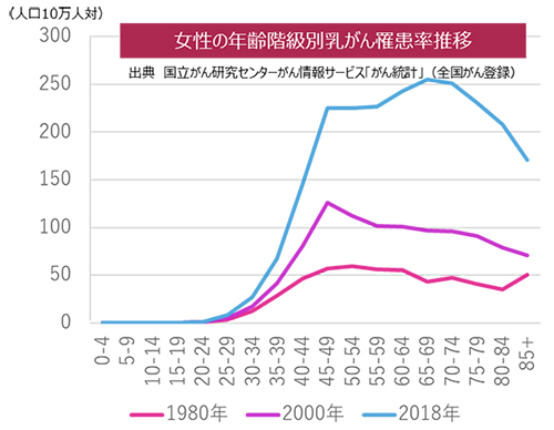 乳がんの罹患率は40歳代から60歳代が高く、仕事や子育てに多忙な年代の方に多いのが特徴です。日常生活や仕事にできるだけ影響を与えずに治療ができるよう、患者様の話を伺いながら治療内容やスケジュールを調整するようにしています。