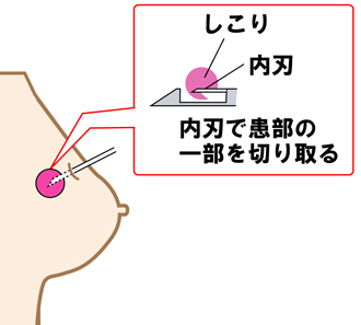 必要に応じて病変の一部を採取して詳細に調べることを生検といいます。一般に針生検が行われ、15分程度で終わります。