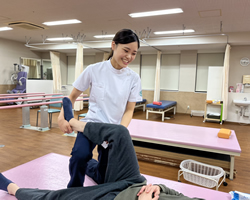 理学療法は、寝返る・起き上る・座る・立つ・歩くなどの基本動作能力の回復をサポートするリハビリテーション療法です。理学療法の内容は、リハビリテーション専門医の指示・管理のもと、体操や筋力トレーニングなどの運動療法、電気刺激その他の物理療法を行います。また、身体の状態に応じて適切な運動負荷をご提案し、身体に負担のかからない動作や生活上の注意点についてもご指導します。このほか、各診療科の依頼にもとづき、各種テストバッテリーを用いた運動機能の評価を行い、診断や治療方針の決定に必要な情報の提供を行います。