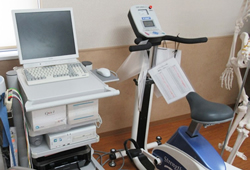 当リハビリテーション室には20名の理学療法士が在籍しています。これは、100床あたりの常勤理学療法士数に換算すると7.32人となり、急性期病院の全国平均を大きく上回っています。経験豊かなスタッフが多く、(社)日本理学療法士協会 認定理学療法士や、心臓リハビリテーション指導士などの有資格者をはじめ、専門性を生かした臨床や教育活動を展開しています。設備面においても、広いリハビリテーション室に、3次元動作解析器やCPXなどの評価機器、red cord®やHUR®などのトレーニング機材を各種取りそろえており、科学的根拠に基づく効率的な理学療法を行うことが可能です。