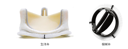 弁膜症の標準的な術式が悪くなった弁を人工弁に取り替える手術です。動物の組織から作られた生体弁と、カーボンなどでできた機械弁があります。両者には以下の様な特徴があります。どちらを使用するかは患者様の状態によります。