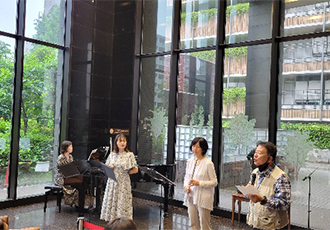 また、季節にちなんだ歌曲「紫陽花」や、最後には一青窈のハナミズキを演奏し、聴衆は耳馴染みのあるメロディーを口ずさんだり、体をゆらしたりして美しいバイオリンの音色に耳を傾けていました。朝から雨模様の1日でしたが、演奏で雨雲が吹き飛んだかのようなさわやかなコンサートとなりました。