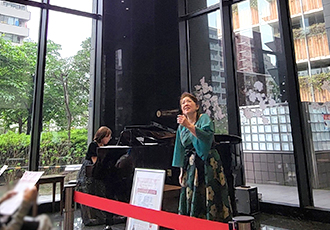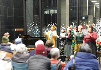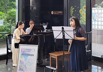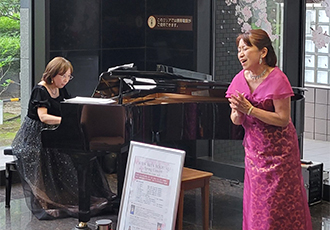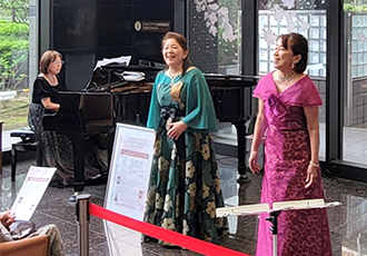 4月8日、松村 由美子様、森口 真未子様、堀内 陽子様によるロビーコンサートを開催しました。滝廉太郎の「花」で、春らしく華やかにコンサートがはじまり、続いて、「浜辺の歌」や「からたちの花」など、みなさんにおなじみの日本の歌曲を披露いただきました。後半は、プッチーニの有名なオペラ「トスカ」や「蝶々夫人」のアリアなど、本格的なクラシックを演奏していただき、最後は会場のみなさんも一緒に「ふるさと」を合唱して、幕を閉じました。会場からは、「交互に歌うおふたりそれぞれの歌声が美しく、楽しめた」「よく知っているオペラの有名な曲を間近で聞けて迫力があり感動した」などの感想が寄せられ、大変好評でした。