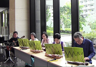 5月15日、日本チター協会アンサンブルによるロビーコンサートを開催しました。チターは、ヨーロッパのアルプス地方で中心に弾かれている伝統楽器で、日本のお琴のような弦楽器です。映画「第三の男」のテーマ曲でとりあげられ、その哀愁を帯びた音色がよく知られるようになりました。日本チター協会は、チターの普及と国際親善を目的として1982年に設立され、コンサートをはじめセミナーや親善交流などを行っており、オーストリア、スイス、ドイツなどでも高い評価を得ています。