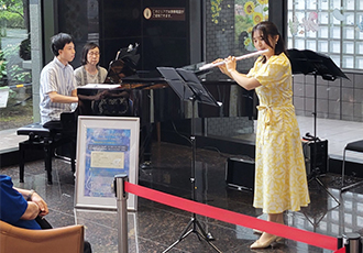 8月13日RIOMS(リオムス)のみなさんによるロビーコンサートを開催しました。RIOMS(リオムス)は、東京音楽大学でピアノ、ヴァイオリン、作曲を専攻する学生5人によって、結成されたアンサンブルグループで、同付属高校在学時から定期的に演奏活動を行ってきました。