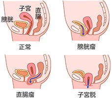 子宮脱や膀胱瘤などの骨盤臓器脱に対して、当院では腹腔鏡下仙骨腟固定術を施行しています。この手術では子宮や膀胱、直腸などの下垂に対する治療として、メッシュを用いて腟を挙上し仙骨に固定します。この術式に手術支援ロボットを用いることで、メッシュ固定の際の縫合操作をスムーズに行うことが可能となり、出血量や術中合併症が少ないことに加え、手術時間を短縮することが期待できます。当院では、腹腔鏡下仙骨膣固定術について施設基準の届出を行っています。