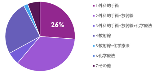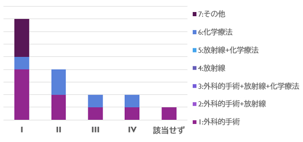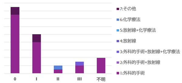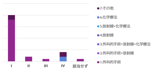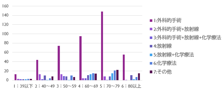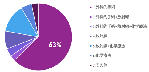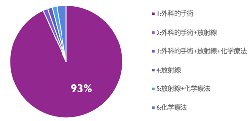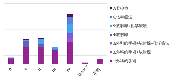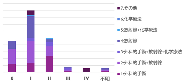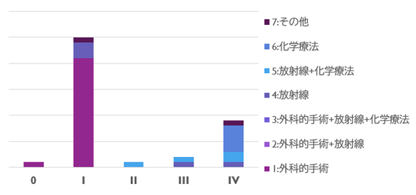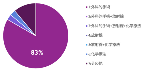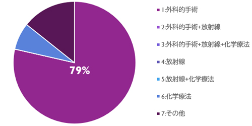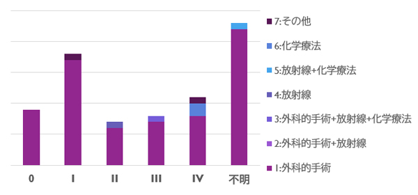 - 治療ではいずれの部位も手術治療が多く行われています。特に、早期がんに対しては手術(内視鏡を含む)の割合が高いです。